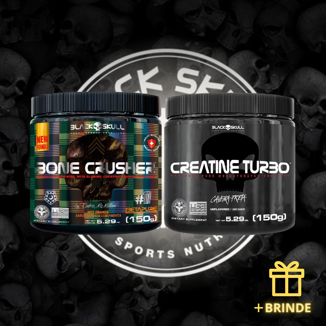 Se você quer ELEVAR seus resultados para o PRÓXIMO NÍVEL, ter os MELHORES suplementos como seus aliados é uma EXCELENTE DECISÃO. A junção do Pré Treino Bone Crusher com a Creatina é o COMBO IDEAL para você que deseja EMAGRECER. A Black Skull é uma marca de suplementos mundialmente renomada e trabalha com a melhor matéria prima que existe. Por isso, ao usar este combo, seus resultados são garantidos. Garanta já o seu e transforme seu shape no corpo dos seus sonhos!
